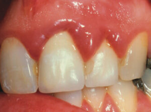 By contrast, healthy gums are generally pale pink in color and lay flat against the underlying bone.